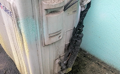 有好多客戶都在問空調(diào)什么時(shí)候要加氟?今天維修一臺空調(diào)時(shí)正好遇到這種缺氟的現(xiàn)象,所以給大家介紹一下空調(diào)沒有氟的現(xiàn)象,這是一臺分體空調(diào)的外機(jī),外機(jī)銅管喇叭口處的銅管如果有以下現(xiàn)象的話,空調(diào)肯定是沒有氟了。