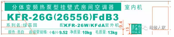經(jīng)檢查,綠嘉園內(nèi)機型號為KFR-26G(26556)FdB3,外機型號為KFR-26W/EFdA,為直流變頻睡美人機型,機型不匹配。