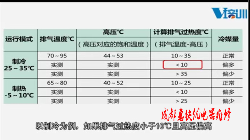 3、制冷劑過多,可以按照上圖所示的壓力和溫度來校準(zhǔn)。